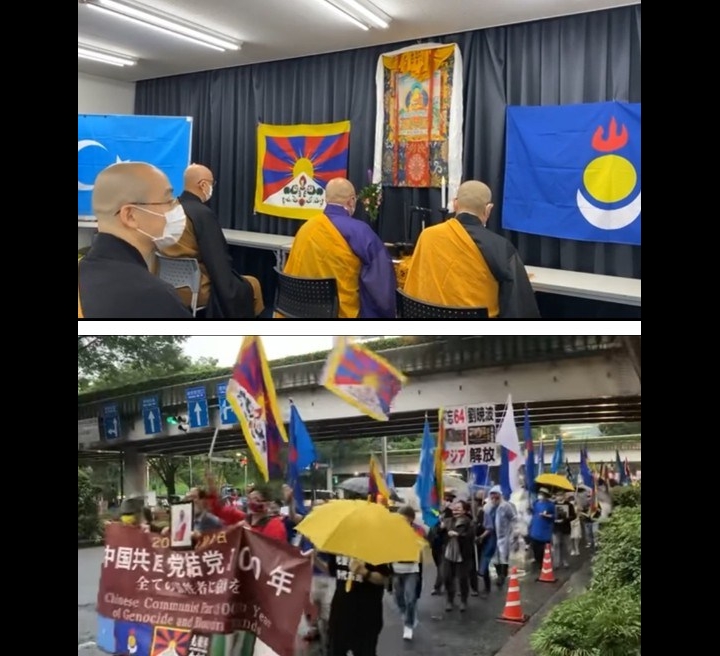 中国共産党が創建100年を迎えた2021年7月1日、犠牲者への追悼集会を行った、 南モンゴル・チベット・新疆ウイグル・香港人や日本人支援者ら約60人が参加。