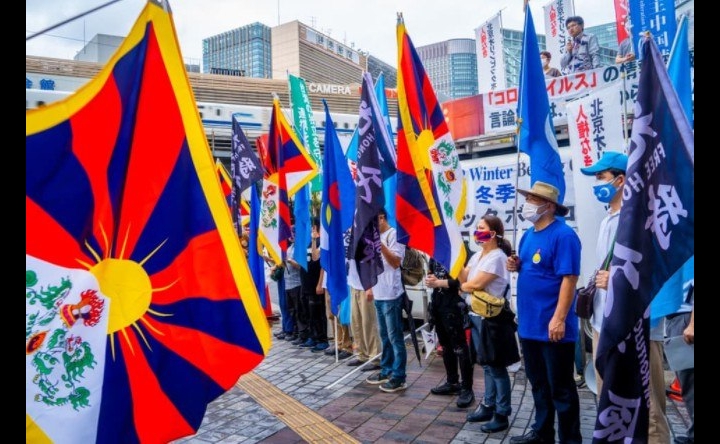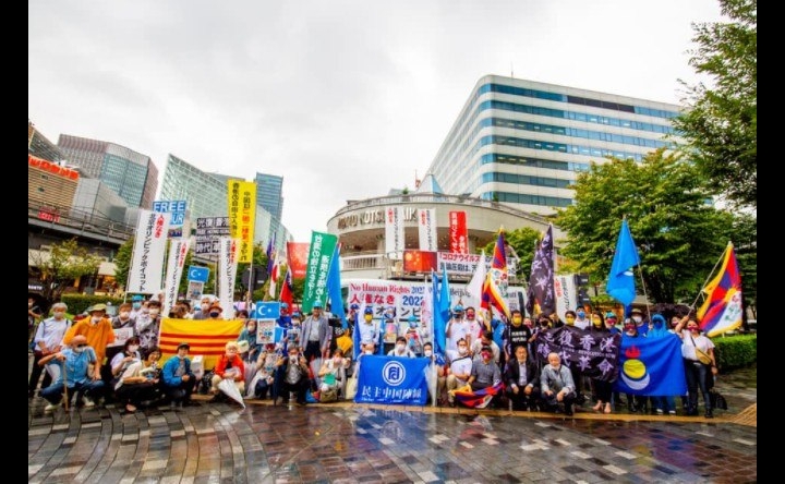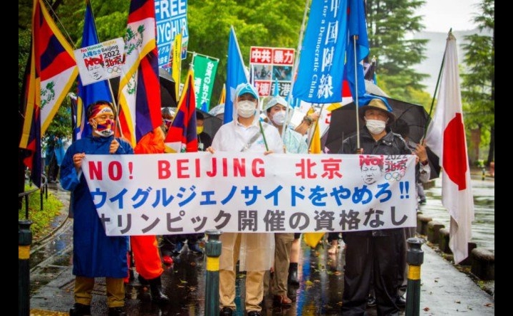 在日ウイグル・モンゴル・チベット・香港人及び日本人の支援者ら、「人権なき2022北京オリンピックボイコット」東京R有楽町駅集会・デモ行進
