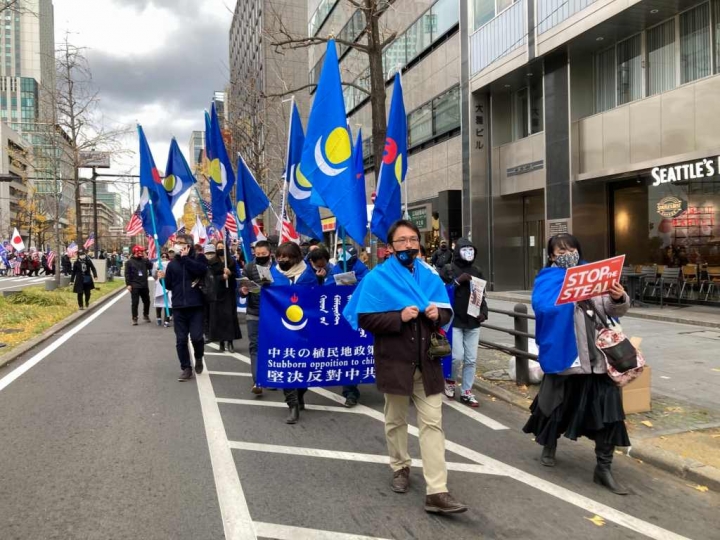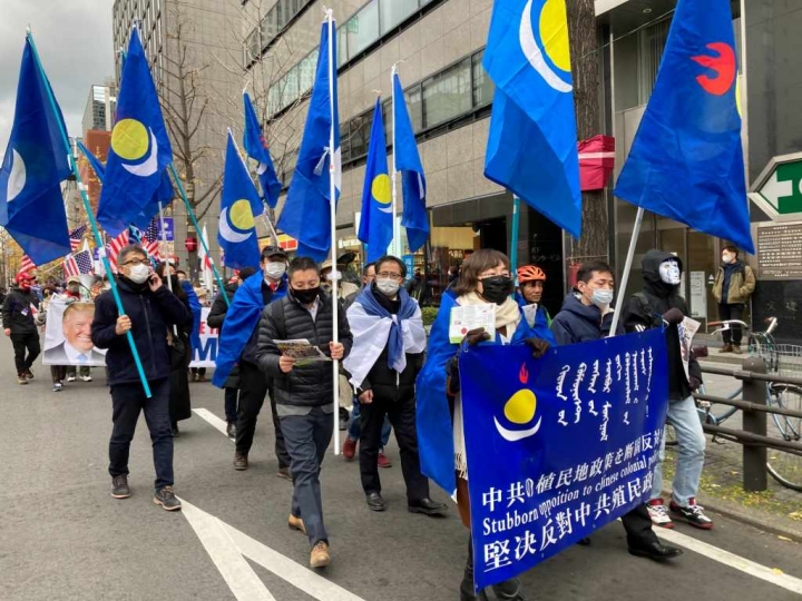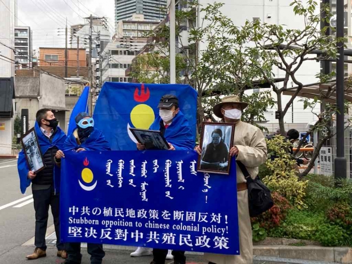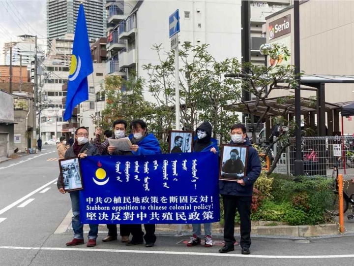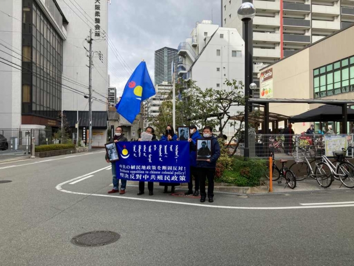 大阪領事館前で抗議デモを行い